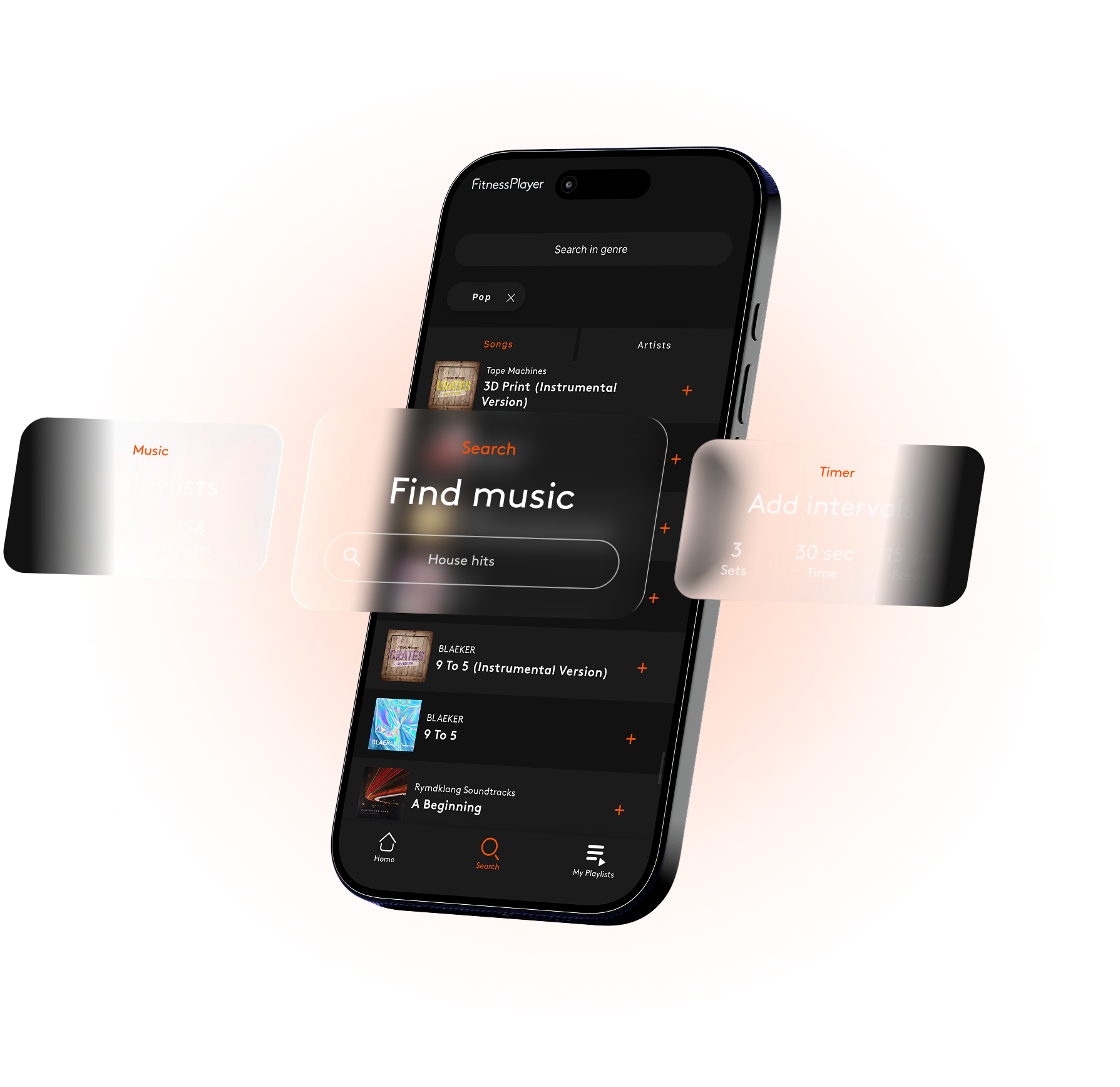 With the FitnessPlayer app, you can choose between commercial hits or music from our royalty-free catalog powered by Epidemic Sound. Both options are fully licensed for public performance – and no matter the workout, you’ll always have the perfect soundtrack.